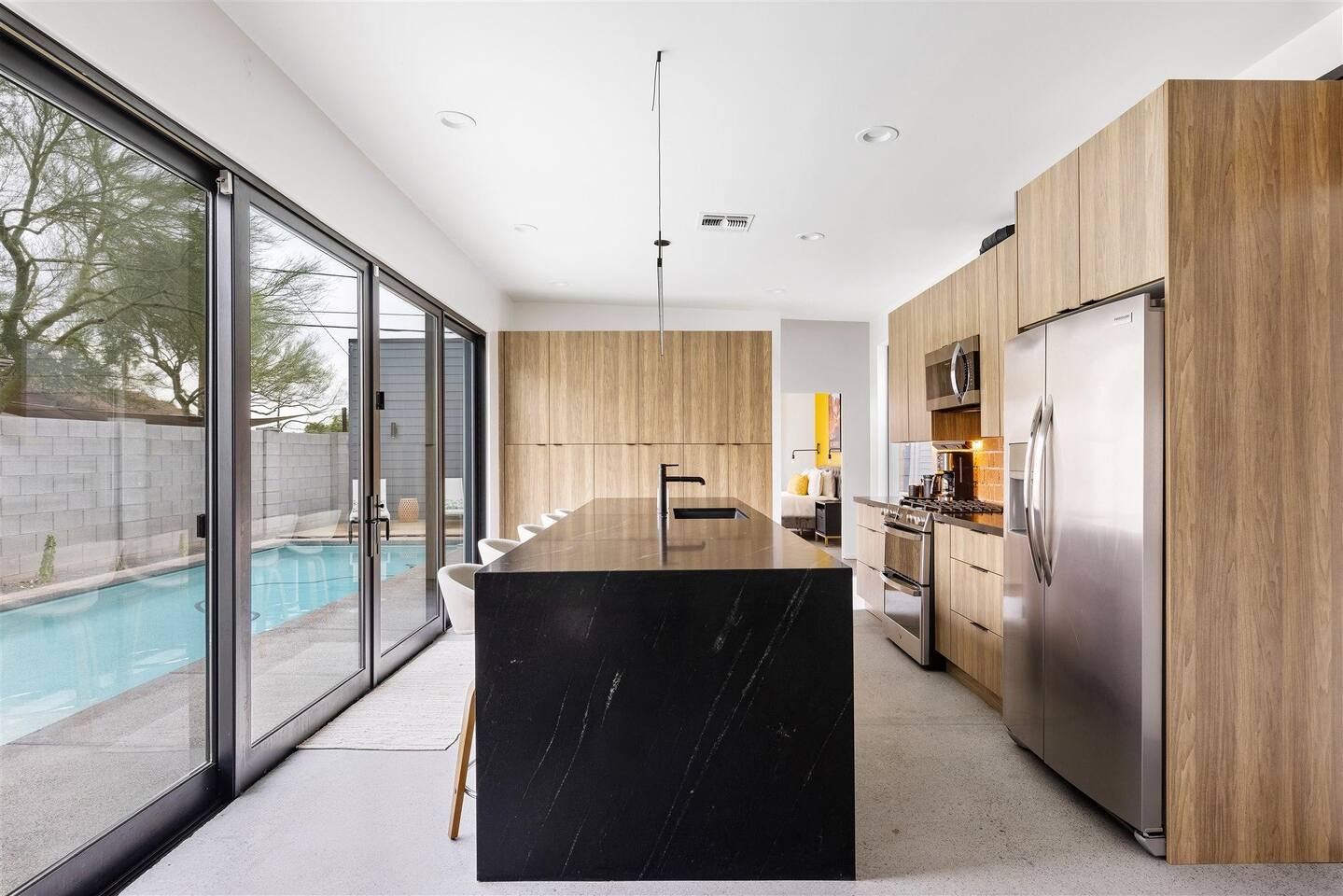 -Chef's Kitchen: Vitamix, Instapot -Outdoor kitchen, grill, drink fridge -Fiber Internet, up to 940 Mbps -Walk to Coffee Shops, Restaurants -Private Pool (not heated) + pool bathroom -Concierge Add-on! Cheese board, marg bar, decor. Arriving early or leaving late? Ask about a half day add-on!
