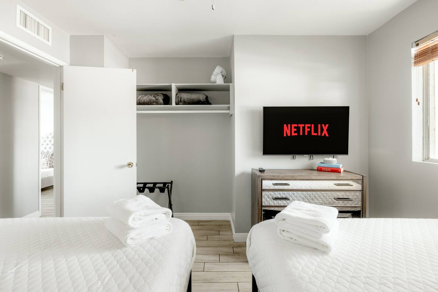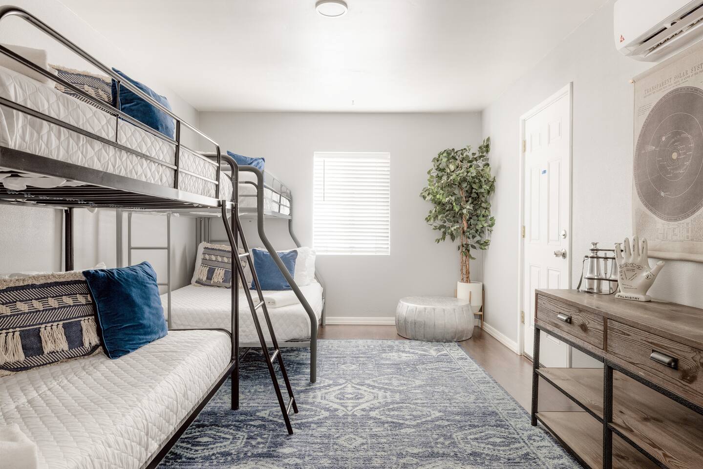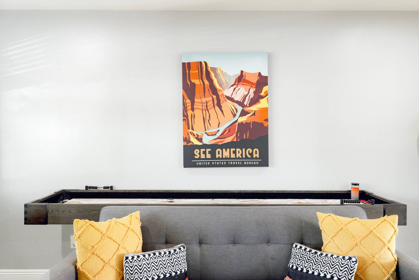 BEDROOMS: -Bedroom 1: King Bed + Private Bathroom w/Shower + 42 inch flat screen smart TV + ceiling fan -Bedroom 2: King Bed + 42 inch flat screen smart TV + ceiling fan -Bedroom 3: Two Queen Beds + 42 inch flat screen smart TV + ceiling fan -Bedroom 4: Twin Over Full Bunk Bed + Twin Bunk Bed BATHROOMS: -Bathroom 1: Walk-in shower + single vanity -Bathroom 2: Walk-in shower and stand alone tub + single vanity -> Both bathrooms come with hair dryers, fluffy towels, hand soap, body soap, shampoo and conditioner. LIVING ROOM - Large 65 inch flat screen smart TV - High speed internet - Live TV included! - Open concept living with living room next to kitchen + dining! - Shuffleboard KITCHEN - Stainless steel appliances - Drip coffee maker includes cream/sugar - Locally roasted Press Coffee provided - Teapot, blender, toaster - Pots, pans, baking dishes - Storage containers for leftovers - Mixing bowls, dish towels, knives - Microwave - Filtered water + ice from the refrigerator POOL + HOT TUB - Optional heated pool with loungers + umbrella - Pool Heat: $65/night or $400/week, Oct–Apr - Hot tub included - Electric air pump for your pool floats! - Pool towels provided - We do not provide floats for safety reasons, but feel free to bring your own! OUTDOORS - Outdoor living complete with couch, bar top, TV, + ping pong! - Fire pit - BBQ grill - Propane tanks provided LAUNDRY - Private washer and dryer - Laundry detergent provided - Iron and ironing board