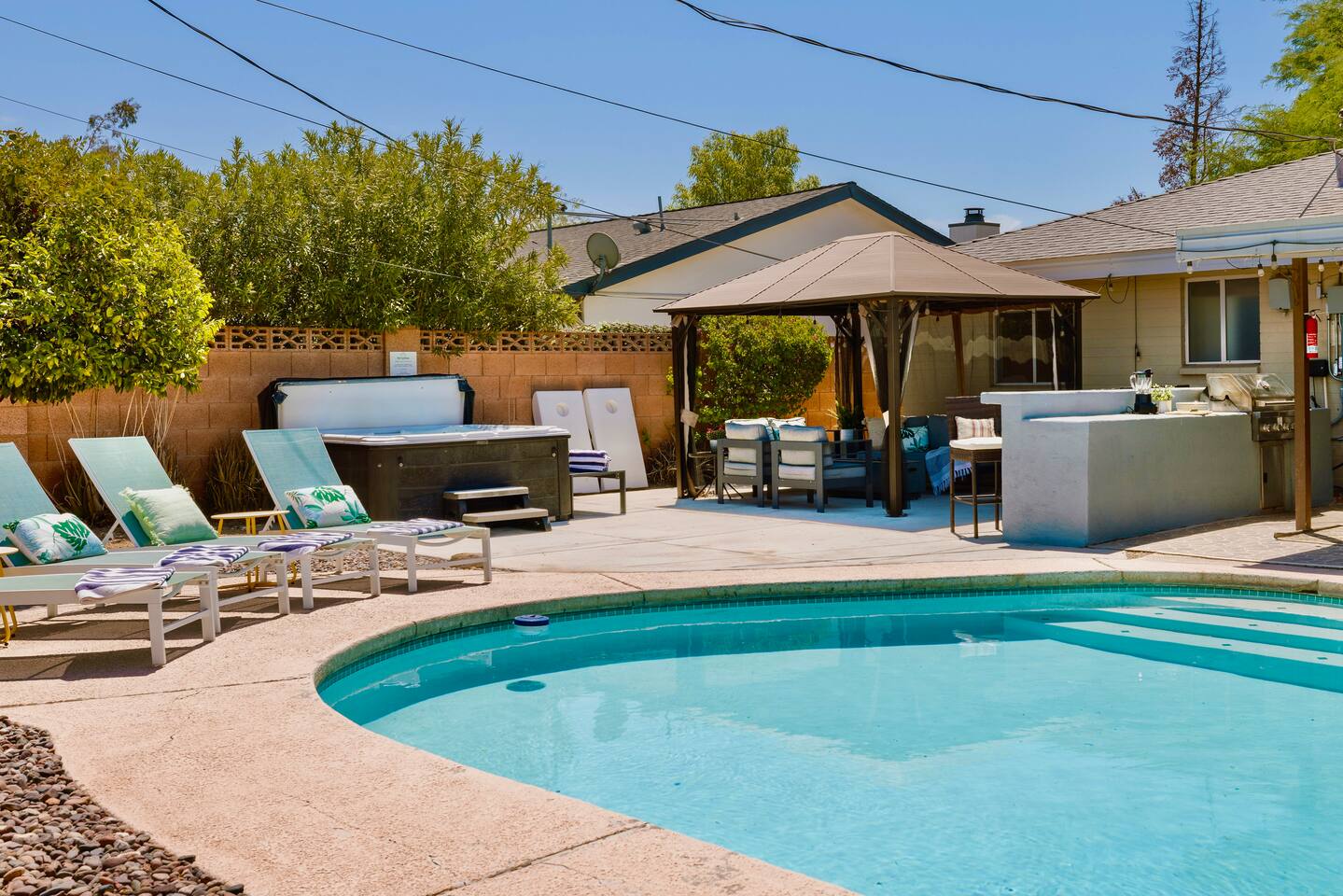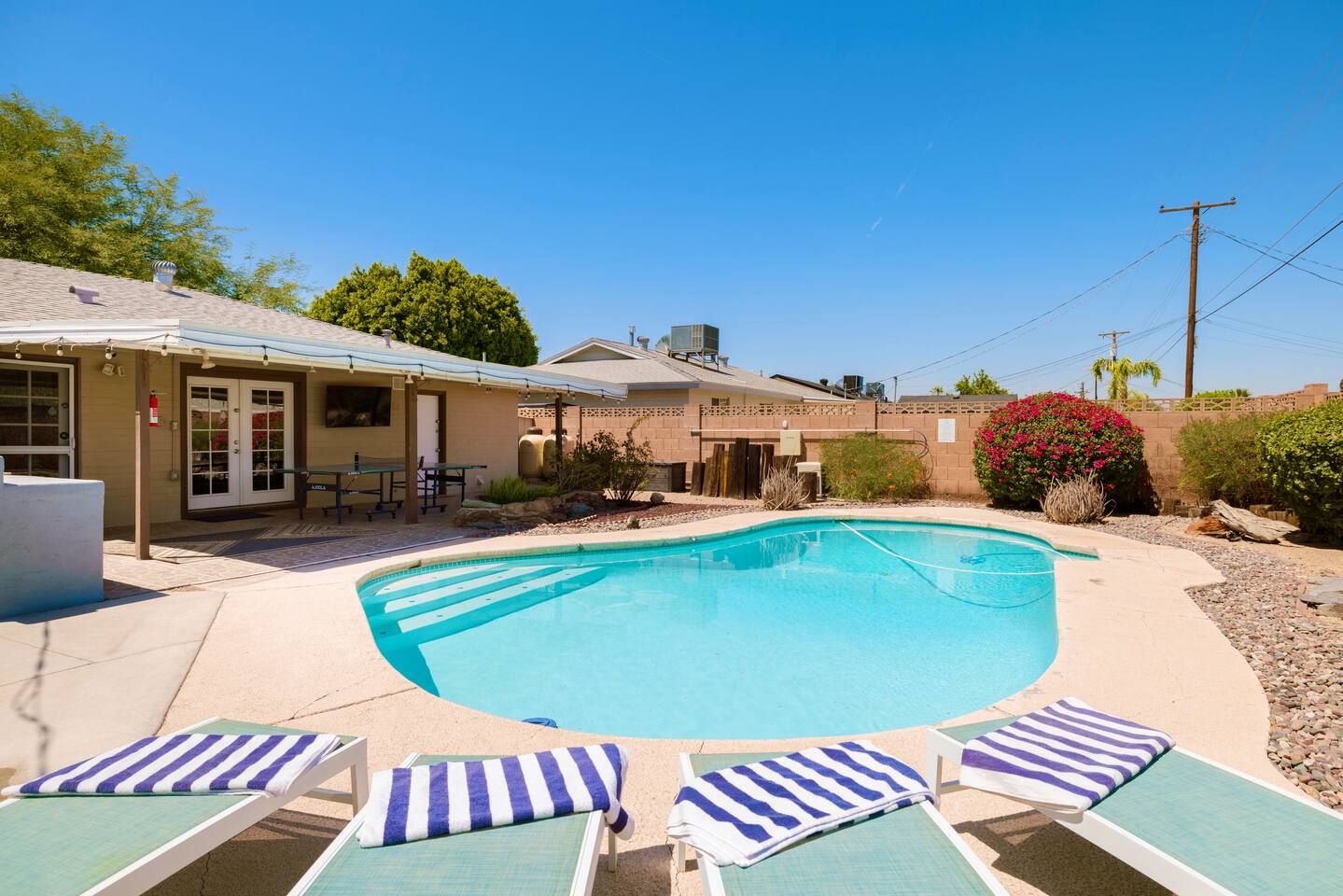 💡 Quick Facts - Pool Heat: $65/night or $400/week, Oct- Apr - Early Check-In: Half-day add-on when available - Late Checkout: consider a half-day add-on - Luggage Drop-Off: Not available, but we can recommend a service - Concierge Add-Ons: Fridge stocking, charcuterie board, cocktail bar available - Cameras: Exterior only — driveway and back back patio - Pets: Up to 2 dogs allowed for additional fee at booking 🚫 House Rules - Outside Vendors by request only: no hibachi, cabana boys or similar - No 3rd-Party Bookings: Booking person must be present entire stay. - 10pm Quiet Time: City Noise Ordinance, lowered voices - No confetti, glitter, rose petals or taping things to walls - No Smoking indoors or out - No unapproved visitors. Unauthorized visitors will result in cancellation without refund. ❓ After Instant Booking or Requesting to Book you’ll be asked some questions about your stay. Please reply within 24 hours so we can prepare for your visit. Don’t worry, it will be painless! Arizona TPT: #21442211 | Scottsdale STR license: #2023449