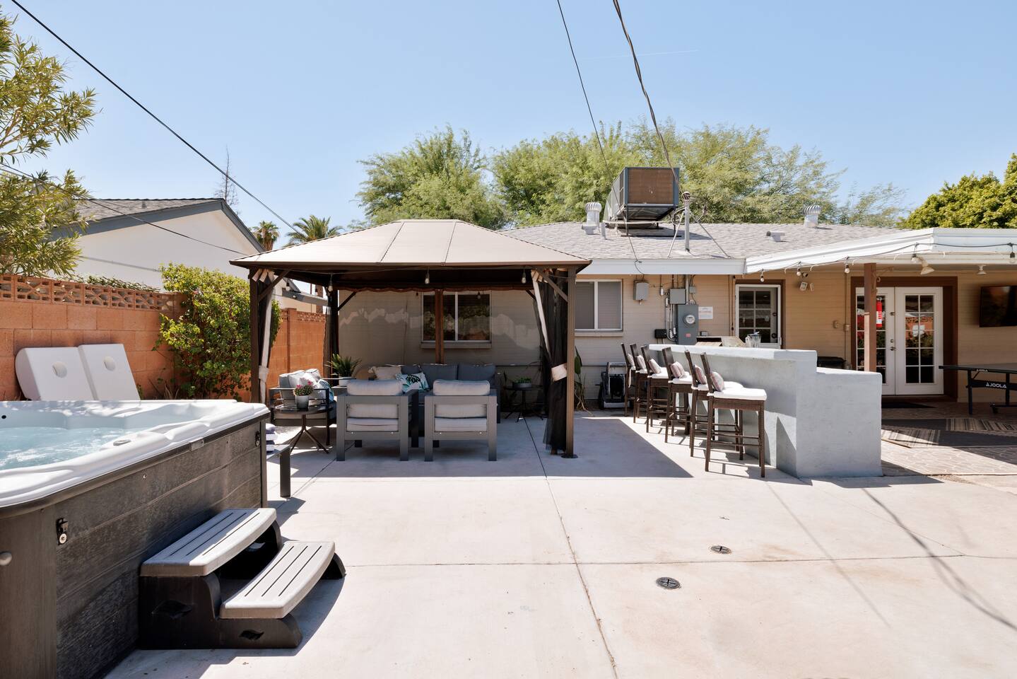 Desert Jewel: Minutes from Old Town, sleeps 12! - Heated pool* + hot tub + outdoor seating - Shuffleboard + ping pong table + grill - TVs in most bedrooms + outside! - Fully equipped kitchen, Keurig coffee station - Dog friendly! - Fresh clementines + grapefruits from the trees! Arriving a little early? We offer half-day add-on for arrival as early as 9am. Check availability when booking!
