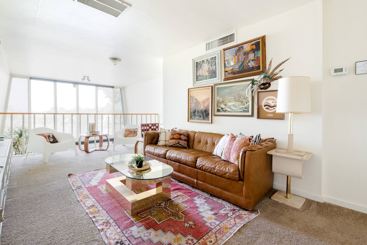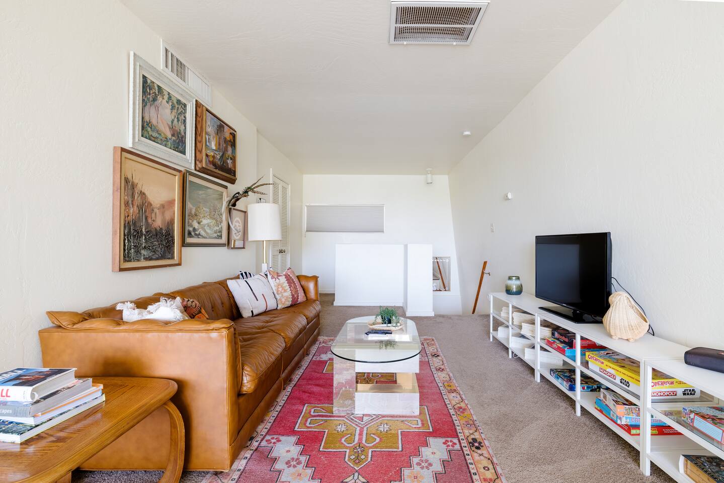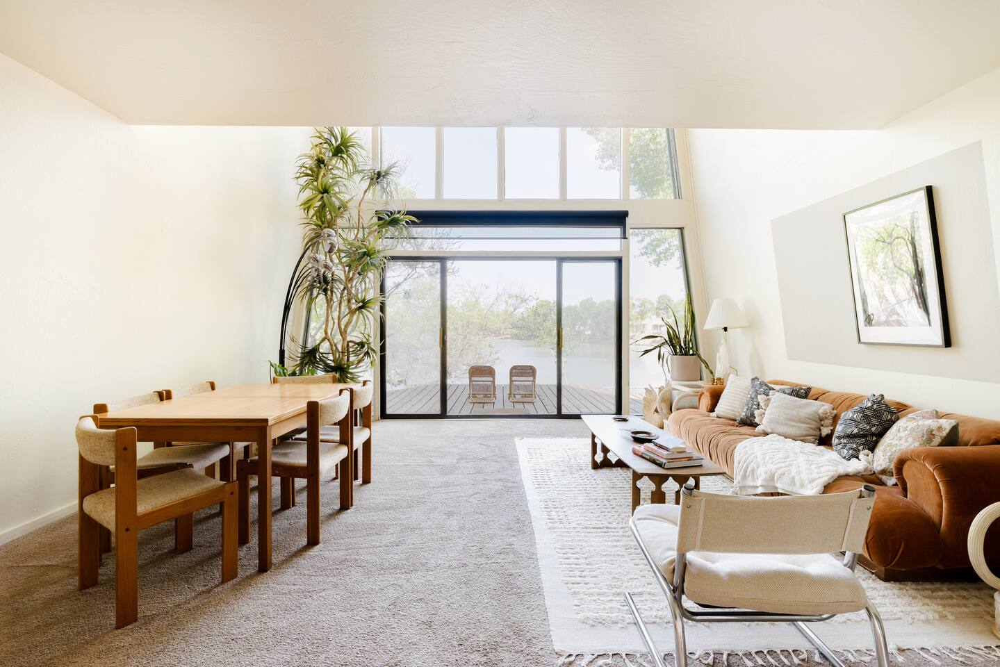Escape to this vintage modified A-Frame retreat, perched on a tranquil duck pond in Cottonwood, AZ. Wake up to sunrise waterfront views from the deck, enjoy outdoor dining by the water, and unwind around the fire pit under desert stars. Perfectly located near Sedona’s red rocks, Verde Valley vineyards, and Old Town Cottonwood’s tasting rooms, this stylish cabin offers a unique blend of retro charm and modern comfort. Ideal for Phoenix and Scottsdale travelers seeking a quick getaway, wine lovers exploring Arizona’s best vineyards, or adventurers looking for a cozy home base in Northern Arizona. BEDROOMS: - Primary: King bed, 2 steps down, dedicated HVAC, dresser, TV - Bedroom 2: Queen Bed, 1st floor, dresser - Bedroom 3: 2 Twin Beds, 1st floor, dresser * Fans, blackout blinds or curtains, cooling memory foam mattresses provided in each bedroom BATHROOMS: - 1st Floor: tub/shower combo, single vanity - 2nd Floor: shower only, single vanity -> Each bathroom comes with towels, washcloths, hand towel, hair dryer, shampoo, conditioner, body wash, hand soap, TP, toilet spray ✌️ Stayin’ true to that funky A-Frame life, the bathrooms are pint-sized, but have all the essentials you need LIVING + DINING ROOM - Floor to ceiling windows overlooking the duck pond - Plush vintage velvet sofa - Dining table - Books and magazines provided KITCHEN - Filtered water - Pots and pans, baking dishes, containers for leftovers - Drinking glasses, salad/mixing bowls, knives - Dish towels - Dishwasher, gas oven/stove, refrigerator - Microwave - Instant Pot + Slow Cooker - Toaster, Blender EPIC COFFEE BAR - Coffee, hot chocolate, tea - Nespresso machine, Cuisinart drip machine - Pour over, Aero Press, cold brew maker, French press, and bean grinder. - Sweeteners + creamer provided ENTERTAINMENT - 43" TV with Roku in loft - 49" SmartTV in primary bedroom - Use your own login to access streaming apps - No live TV at this time - Record player with an assortment of records - Deck of cards, puzzles and books - Large vintage Arch Digest collection - High speed internet - WiFi speeds up to 150 Mbps OUTDOORS - Private deck overlooking the duck pond with sunrise views - Outdoor dining table seats 6 - Gas fire pit + seating area - Gas Weber grill - Propane provided - Fenced in yard to keep the humans in and the ducks out - Plenty of space to find a good corner to meditate or do morning yoga - Gravel walking path surrounding the pond, open to public LAUNDRY + CLEANING - Washer and dryer in home - Laundry detergent, stain treatment and dryer sheets provided - Rags, cleaning supplies, vacuum, mop and broom SEASONAL COMMUNITY POOL - Verde Village Community Pool - Typically open May - October, weather permitting - We provide towels at the home for our guests to use - The pool is open six days a week, Tuesday through Sunday from 11am to 6pm. - Please note: Guests will pay non-member rates, cash only… Adults: $8/day Children 10 and under: $4/day *prices are subject to change and collected at pool site
