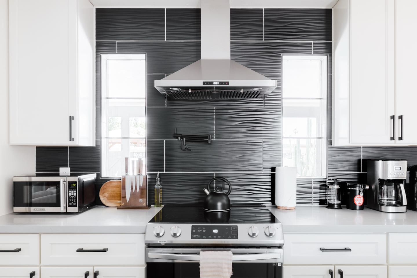 BACKYARD OASIS - Private 7' deep pool, heated by request for additional fee - Pool Heat: $65/night USD or $400/week USD, OctβApr - Hot tub included - 4 pool side loungers + umbrella + towels - Electric air pump for your pool floats! - Gas fire pit lounge area - Weber propane grill, propane included - Outdoor dining seating for 10 - Cornhole game - Yoga mats BEDROOMS - Bedroom 1: King bed, attached bath, door to patio - Bedroom 2: King bed - Bedroom 3: King bed - Bedroom 4: 4 Full beds, make up stations + mirrors -> Each bedroom comes with blackout curtains, memory foam mattresses, full length mirrors and ceiling fans. BATHROOMS: - Primary Bath: double vanity, walk-in shower - Second Bath: single vanity, walk-in shower -> Each bathroom comes with towels, washcloths, hand towel, hair dryer, shampoo, conditioner, body wash, hand soap, TP, toilet spray KITCHEN - Large and fully stocked Chef's Kitchen! - Coffee and tea bar: creamer + sweetener - Cuisinart drip coffee, teapot, toaster, blender - Pots, pans, baking dishes and sheets - Food storage containers - Drinking glasses - Microwave - Electric range - Dishwasher with detergent to start - Filtered water + ice dispenser in fridge - Island seats 4 - Spices and olive oil to start - Hand soap and dish soap provided DINING ROOM - Dining table seats 10 - Outdoor bistro tables under the covered patio seats 10 AMENITIES - 2 sets of front load washer + dryer, plus supplies - Iron, ironing board, steamer - 65" SmartTV: Living room - WIFI speeds up to 500 Mbps