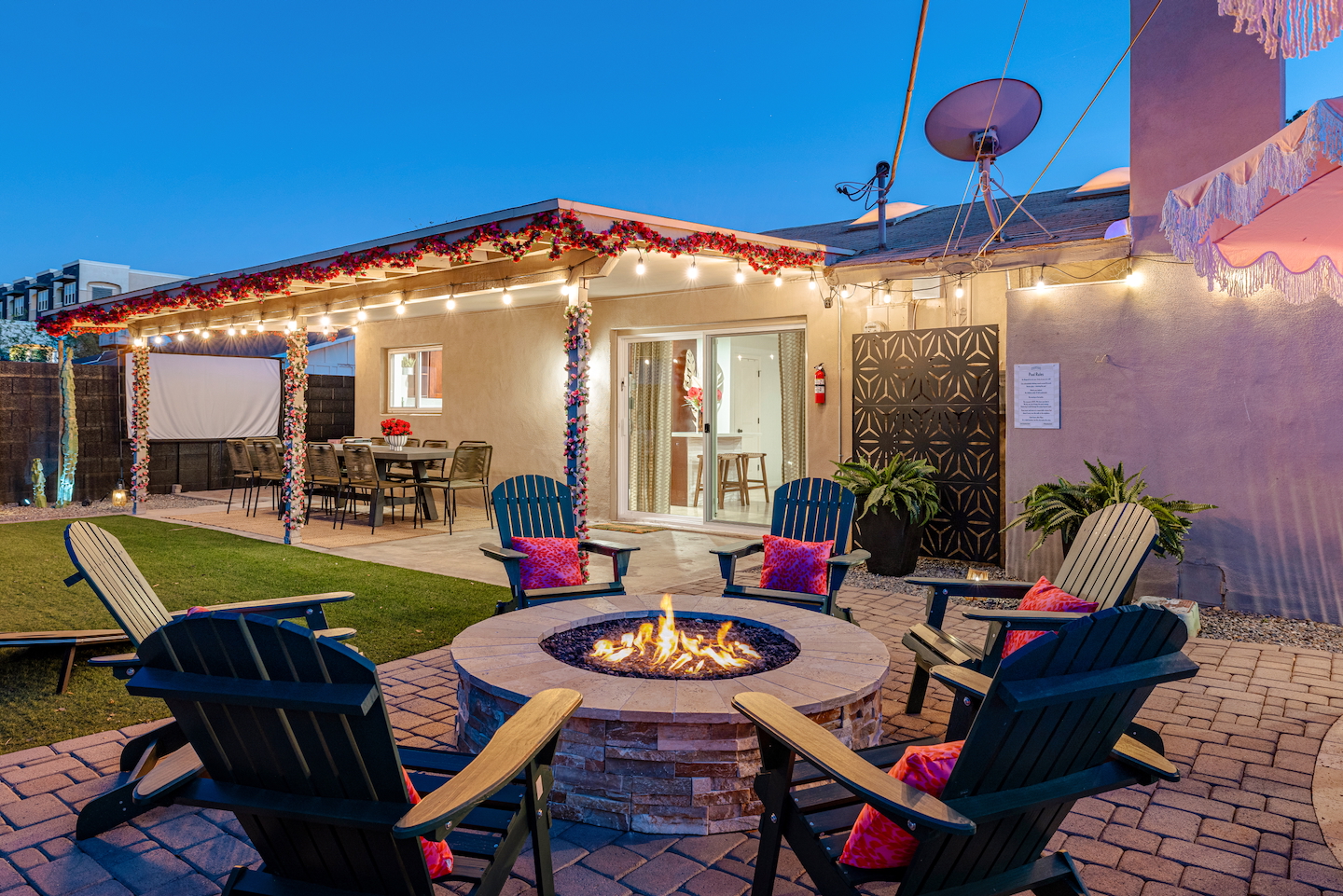 Palm Ritual just 1.5 Miles from Old Town! - Karaoke Lounge, Glam bar - Heated pool*, pool loungers, pool towels - Outdoor movie screen + projector - Fire pit, yard for games or yoga - Concierge Service: Stock the fridge, snack board, marg bar, decor - Vendors approved, we have a preferred vendor list! **Arriving early or leaving late? Ask us about our half day add-on, if our calendar allows