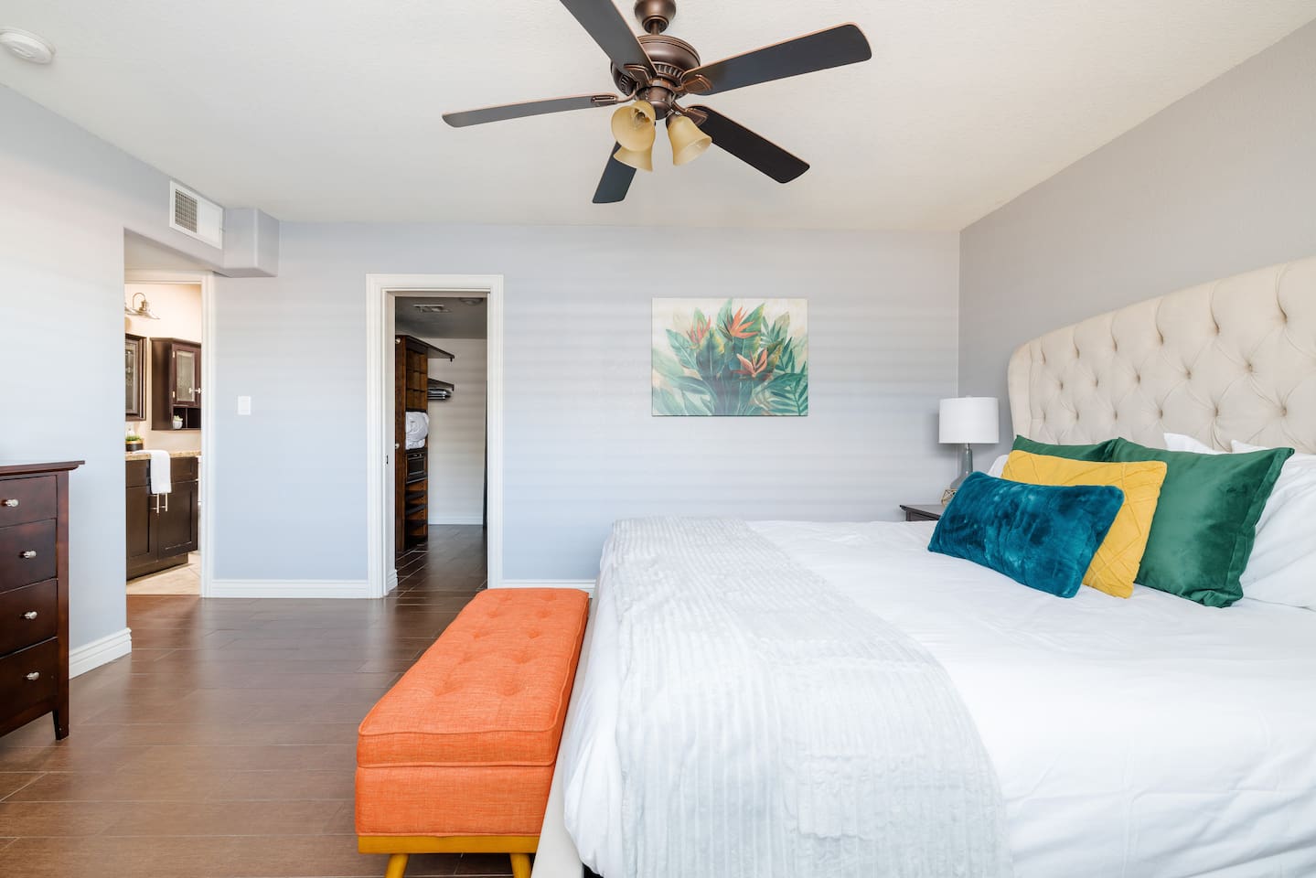 Guests have access to the entire property, front and back yard and the entire home. There is space for 1 car in the garage, 2 cars in the driveway, and any additional cars can park in front of the home. Please do not park in front of neighbors homes. We have a keyless entry system with a unique code provided to each of our guests prior to their stay.
