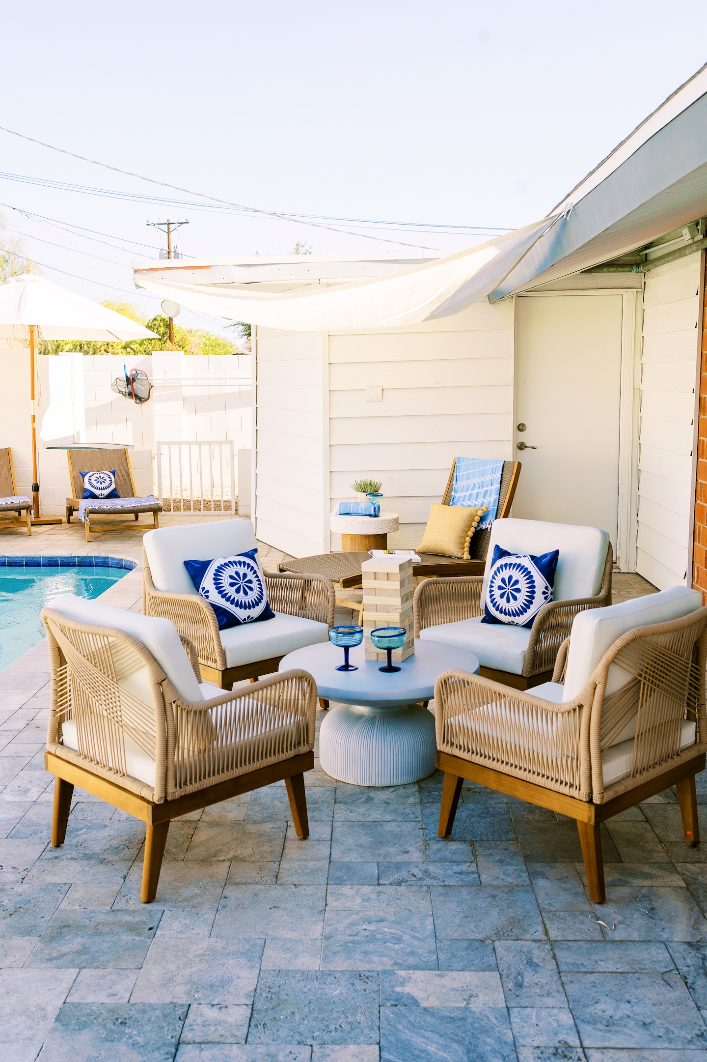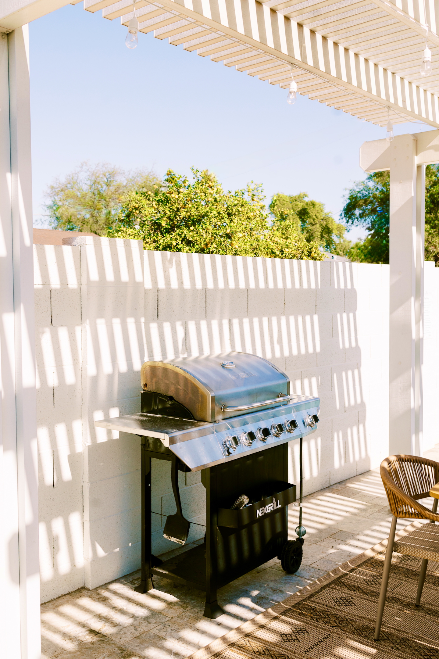 Step outside to your own private Scottsdale oasis featuring a heated pool, BBQ grill, and multiple outdoor lounge areas perfect for sunbathing, dining, or evening cocktails under the cafe lights. The spacious yard is ideal for morning yoga, family hangouts, or relaxing with friends after exploring Old Town Scottsdale, Camelback Mountain, or the Scottsdale Wine Trail. Whether you’re here for a girls’ getaway, family vacation, or bachelorette weekend, this backyard is where memories are made year-round. BEDROOMS - Primary: King Bed + ensuite Bath - Bedroom 2: Queen + full bed - Bedroom 3: Queen + full bed - Bedroom 4: 2 Queen beds + ensuite bath -> Each bedroom comes with California Design Den linens, blackout curtains or shades, ceiling fan, full length-mirror and luggage racks. BATHROOMS - Primary Ensuite: Single Vanity, Walk-in Shower - Ensuite Bath 2: Single Vanity, Walk-in Shower - Hall Bath: Single Vanity, tub/shower Combination -> Each bathroom comes with hair dryers, fluffy bath towels, hand towels hand soap, body soap, shampoo, conditioner, Who Gives a Crap toilet paper and toilet spray. KITCHEN - Cuisinart Drip, organic locally roasted ground coffee - Coffee bar: creamer, tea, sugar - Fridge: Filtered water + Ice maker - Wine/beverage fridge - Dishwasher - Electric Range - Microwave - Instant pot - Toaster - Pots and pans, baking dishes, containers for leftovers - Drinking glasses, salad/mixing bowls - Knives - Wine + margarita glasses DINING - Indoor Dining Table seating for 8 - Island seating for 4 - Outdoor Dining Table seating for 8 LIVING ROOM - 65" Smart RokuTV - Board Games OUTDOORS - Natural Gas Grill + utensils - Outdoor dining, seating for 8 - Sofa lounge area - Cornhole game POOL - Heated Pool available - Pool Heat: $65/night USD or $400/week USD, Oct-Apr - Pool deck patio loungers + umbrellas - Electric air pump for your pool floats! - Pool towels provided ENTERTAINMENT: - Living Room SmartTVs - Use your own login to access a variety of streaming apps. - High Speed WiFi LAUNDRY - Washer and dryer in home - Laundry detergent, stain treatment and dryer sheets provided - 1 Steamers + 1 Iron/ironing board