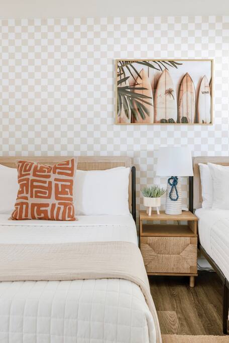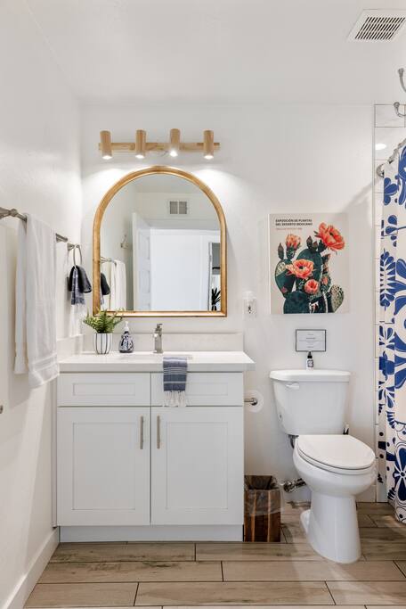 Step outside to your own private Scottsdale oasis featuring a heated pool, BBQ grill, and multiple outdoor lounge areas perfect for sunbathing, dining, or evening cocktails under the cafe lights. The spacious yard is ideal for morning yoga, family hangouts, or relaxing with friends after exploring Old Town Scottsdale, Camelback Mountain, or the Scottsdale Wine Trail. Whether you’re here for a girls’ getaway, family vacation, or bachelorette weekend, this backyard is where memories are made year-round. BEDROOMS - Primary: King Bed + ensuite Bath - Bedroom 2: Queen + full bed - Bedroom 3: Queen + full bed - Bedroom 4: 2 Queen beds + ensuite bath -> Each bedroom comes with California Design Den linens, blackout curtains or shades, ceiling fan, full length-mirror and luggage racks. BATHROOMS - Primary Ensuite: Single Vanity, Walk-in Shower - Ensuite Bath 2: Single Vanity, Walk-in Shower - Hall Bath: Single Vanity, tub/shower Combination -> Each bathroom comes with hair dryers, fluffy bath towels, hand towels hand soap, body soap, shampoo, conditioner, Who Gives a Crap toilet paper and toilet spray. KITCHEN - Cuisinart Drip, organic locally roasted ground coffee - Coffee bar: creamer, tea, sugar - Fridge: Filtered water + Ice maker - Wine/beverage fridge - Dishwasher - Electric Range - Microwave - Instant pot - Toaster - Pots and pans, baking dishes, containers for leftovers - Drinking glasses, salad/mixing bowls - Knives - Wine + margarita glasses DINING - Indoor Dining Table seating for 8 - Island seating for 4 - Outdoor Dining Table seating for 8 LIVING ROOM - 65" Smart RokuTV - Board Games OUTDOORS - Natural Gas Grill + utensils - Outdoor dining, seating for 8 - Sofa lounge area - Cornhole game POOL - Heated Pool available - Pool Heat: $65/night or $400/week, Oct-Apr - Pool deck patio loungers + umbrellas - Electric air pump for your pool floats! - Pool towels provided ENTERTAINMENT: - Living Room SmartTVs - Use your own login to access a variety of streaming apps. - High Speed WiFi LAUNDRY - Washer and dryer in home - Laundry detergent, stain treatment and dryer sheets provided - 1 Steamers + 1 Iron/ironing board