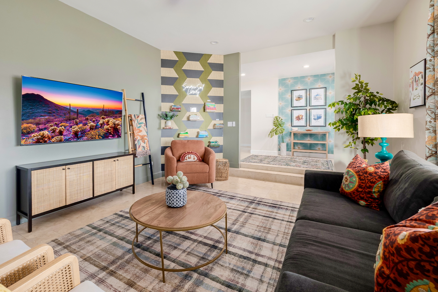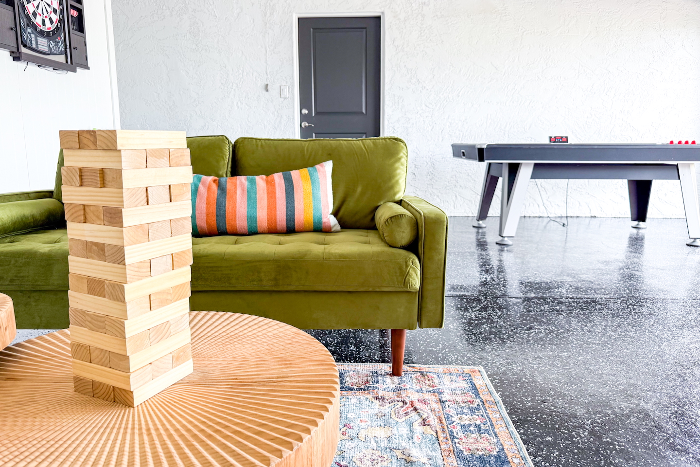 Escape to Sonoran Soul, a luxury North Scottsdale retreat just 5 minutes from Kierland Commons and Scottsdale Quarter. Perfect for families, groups, golf trips, and bachelorette getaways, this 4-bed, 2-bath home sleeps up to 12 and delivers the full resort experience—8' deep private heated pool, hot tub, putting green, fire pit, outdoor kitchen, Smart TVs everywhere, and a garage game room loaded with air hockey, arcade games, darts, and more. Inside, unwind in stylish living spaces, a fully stocked chef’s kitchen, and comfortable bedrooms with blackout shades and bamboo linens. Fast Wi-Fi, multiple workspaces, and top-tier Mostess hosting round out a stay built for effortless fun in one of Scottsdale’s most desirable neighborhoods. Outdoor Oasis: - Private 8' deep pool (heating available) - Hot tub for relaxing evenings - 3-hole putting green and cornhole boards - Outdoor kitchen with grill and bar seating - Fire pit with cozy seating area - Covered patio with dining for 8 and outdoor Smart TV Bedrooms: - Primary: King bed with ensuite bathroom - Bedroom 2: Queen bed - Bedroom 3: Two twin bunk beds - Bedroom 4: Two queen beds - Bamboo sheets, fans, blackout shades/curtains Bathrooms: - 2 full baths, one stand up shower (primary), one shower/tub combo - Shampoo, conditioner, body/hand soap - Fluffy towels and hair dryers provided Indoor Comforts: - Stocked chef's kitchen with modern appliances - Spacious living areas with Smart TVs - Garage game room featuring air hockey, arcade games, and more - High-speed Wi-Fi and dedicated workspace - Washer and dryer with provided essentials - Nespresso, Keurig, drip, coffee press, tea bar - Fully stocked kitchen: InstantPot, blender Dining: - Dining table that seats 6 - Bar stools at counter seat 4 - Outdoor dining seats 6 Entertainment: - 5 Smart TVs: both living rooms, primary bedroom, bunk room, outside - Log in to any app of your choice with your own login - High speed WIFI - Our dining table is a great place to get work done - Pac-Man arcade game Pool + Hot Tub - Private pool can be heated Oct 1 - April 30, additional daily fee - Pool Heat: $65/night USD or $400/week USD, Oct–Apr - Hot Tub always included - Pool pump for floats provided - 8 pool side lounge chairs, plus umbrellas - Pool towels provided Backyard: - Outdoor kitchen with grill, SmartTV, sink, fridge, bar seating - Fire pit + conversation seating area - Covered patio with dining table, seating for 10 - Covered Outdoor Smart TV Lounge - Yard games Garage Game Room - Air hockey - Pop-a-shot basketball hoop - Pacman Arcade game - Street Fighter II arcade game - Darts - Sofa with coffee table - TV Laundry - Washer and dryer in home - Laundry detergent, stain treatment and dryer sheets provided - Iron, ironing board, and steamer provided Parking: - Up to 4 vehicles - Parking Options: driveway, garage or on-street Mostess Hosts Professionally hosted by Mostess, a boutique Arizona vacation rental brand known for elevated experiences and top-tier communication — without the dreaded checkout chore list. Designed by influencer @hautehouselove!