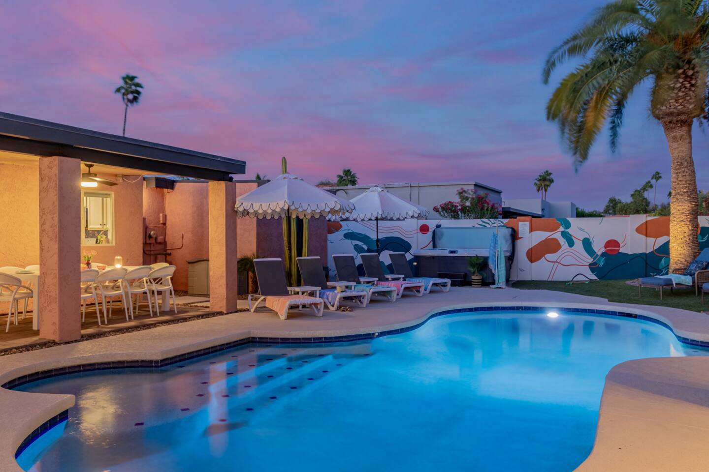 💡 Quick Facts - Pool Heat: $65/night or $400/week, Oct–Apr - Hot tub included - Early Check-In: Half-day add-on when available - Late Checkout: consider a half-day add-on - Luggage Drop-Off: Not available, but we can recommend a service - Concierge Add-Ons: Fridge stocking, charcuterie board, cocktail bar - Cameras: Exterior only — front of home, backyard 🚫 House Rules - Outside Vendors by request only: no hibachi, cabana boys or similar - No 3rd-Party Bookings: Booking person must be present the entire stay. - 10pm Quiet Time: City Noise Ordinance, lowered voices - No confetti, glitter, rose petals or taping things to walls - No Smoking indoors or out - No Pets - No unapproved visitors. Unauthorized visitors will result in cancellation without refund. ❓ After Instant Booking or Requesting to Book you’ll be asked some questions about your stay. Please reply within 24 hours so we can prepare for your visit. Don’t worry, it will be painless! How far is the home from... - Sky Harbor International Airport (PHX): 24 min - TPC Scottsdale, home of Waste Management Open: 11 min - Kierland Commons: 5 min - Arizona State University: 22 min - State Farm Stadium (Glendale): 33 min - Sedona: 2 hrs - Flagstaff: 2 hrs 15 min - Grand Canyon: 3 hr 25 min - Tucson: 2 hrs AZ TPT License: 21462142 | Phoenix STR Permit: STR-2024-000773 Bachelorette Parties | Birthdays | Family Vacations | Golf Trips