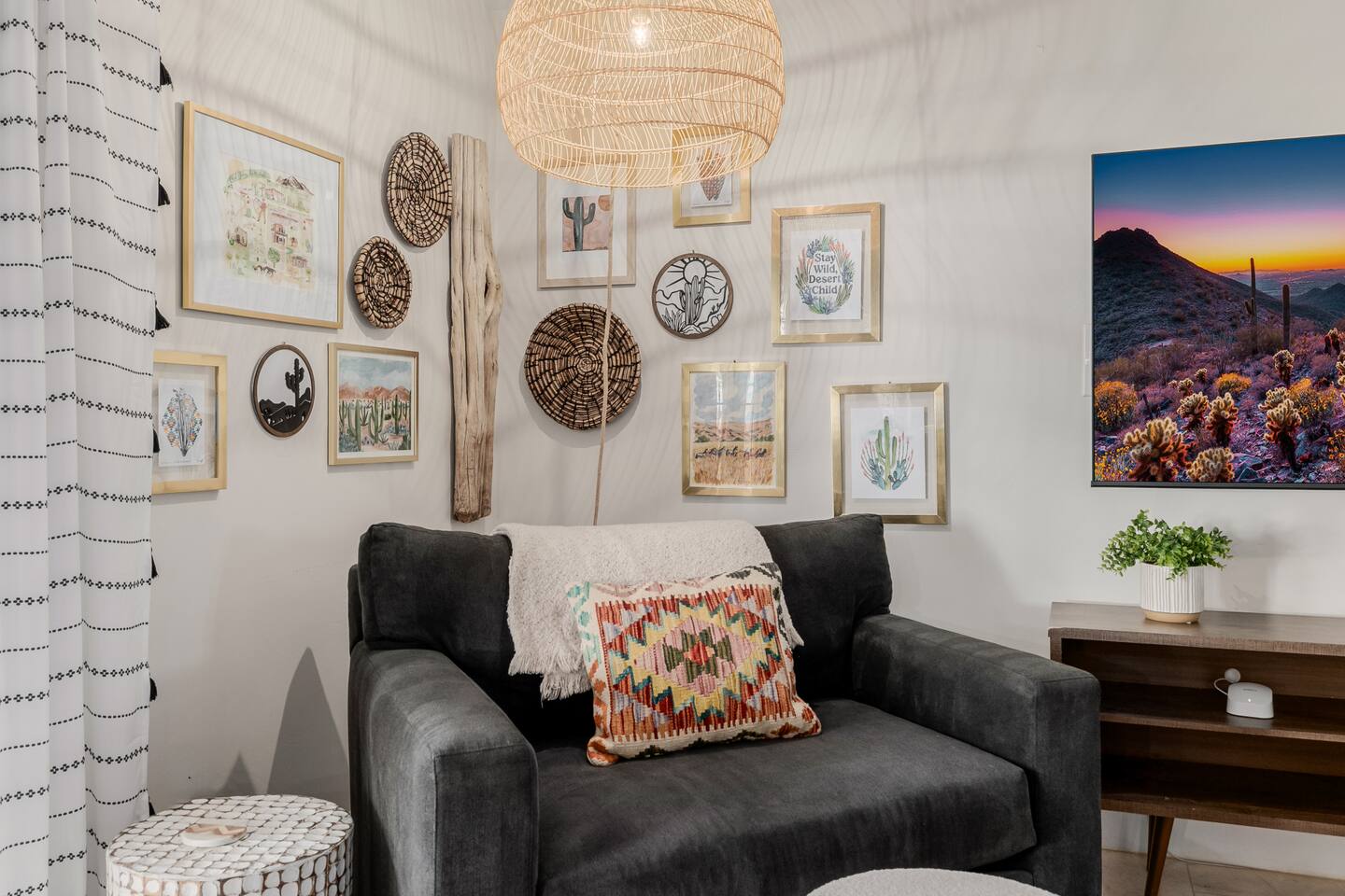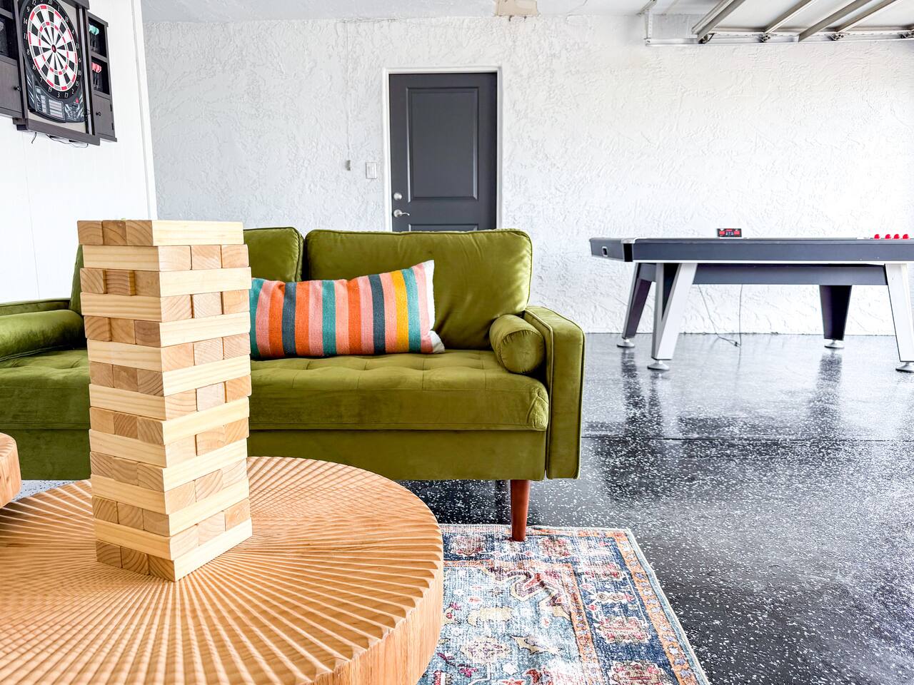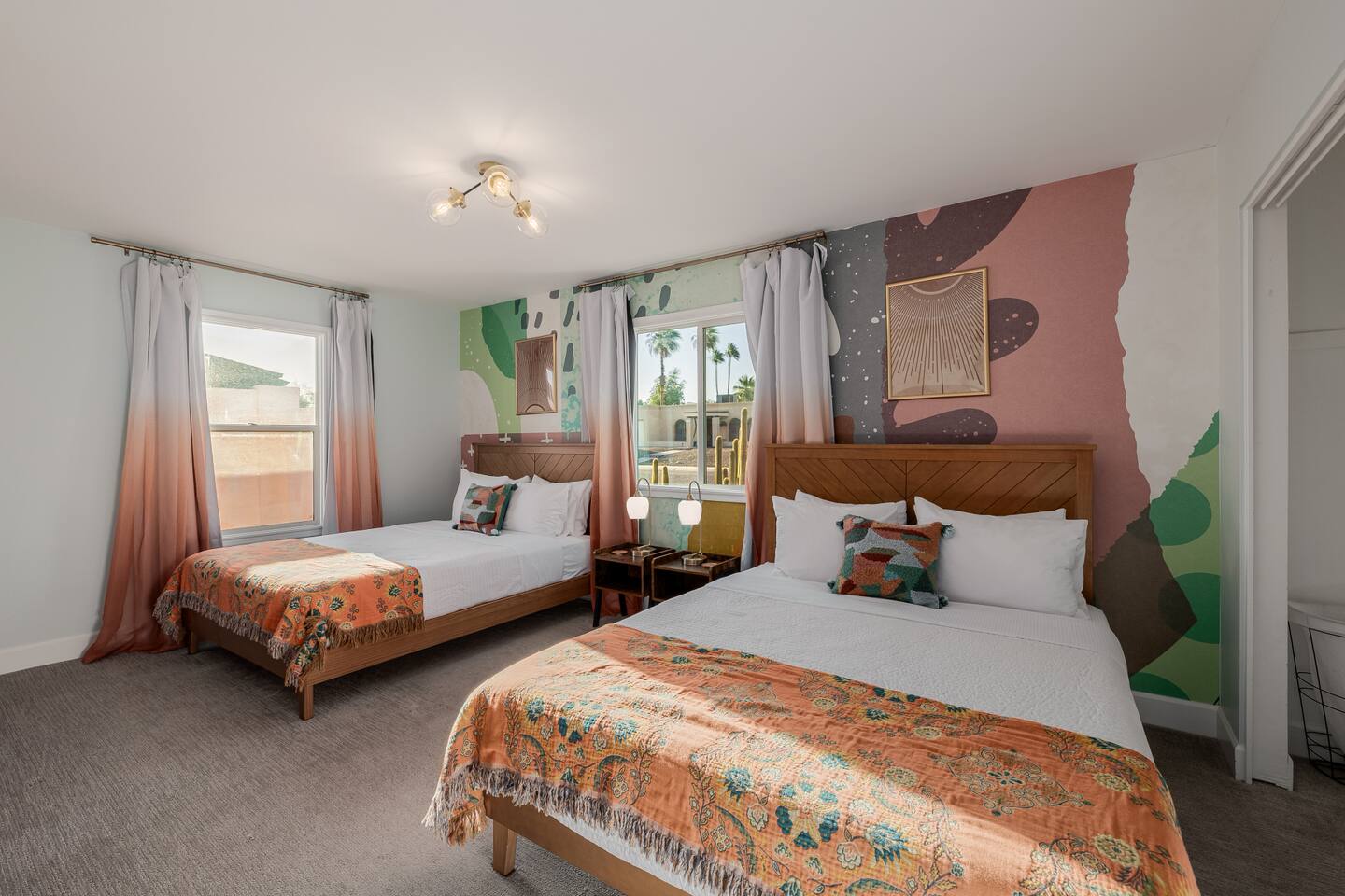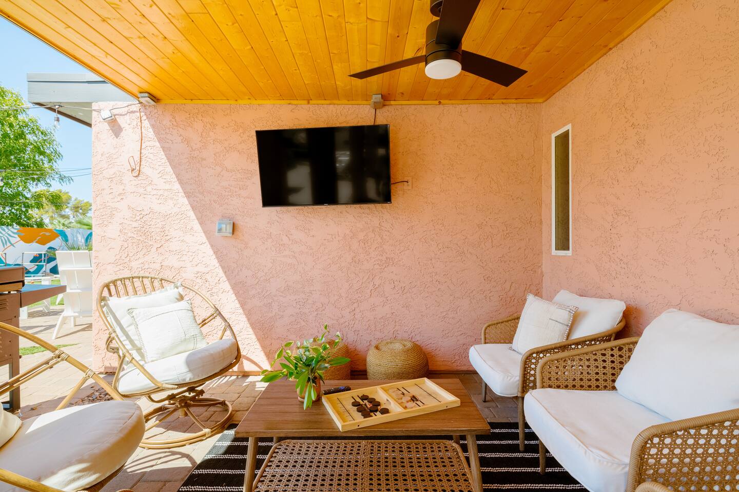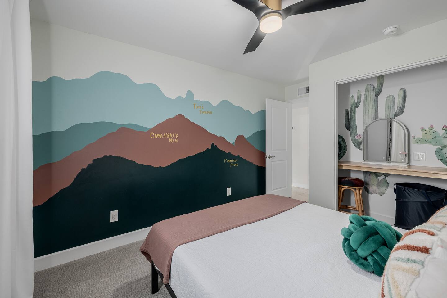 Escape to Sonoran Soul, a luxury North Scottsdale retreat just 5 minutes from Kierland Commons and Scottsdale Quarter. Perfect for families, groups, golf trips, and bachelorette getaways, this 4-bed, 2-bath home sleeps up to 12 and delivers the full resort experience—8' deep private heated pool, hot tub, putting green, fire pit, outdoor kitchen, Smart TVs everywhere, and a garage game room loaded with air hockey, arcade games, darts, and more. Inside, unwind in stylish living spaces, a fully stocked chef’s kitchen, and comfortable bedrooms with blackout shades and bamboo linens. Fast Wi-Fi, multiple workspaces, and top-tier Mostess hosting round out a stay built for effortless fun in one of Scottsdale’s most desirable neighborhoods. Outdoor Oasis: - Private 8' deep pool (heating available) - Hot tub for relaxing evenings - 3-hole putting green and cornhole boards - Outdoor kitchen with grill and bar seating - Fire pit with cozy seating area - Covered patio with dining for 8 and outdoor Smart TV Bedrooms: - Primary: King bed with ensuite bathroom - Bedroom 2: Queen bed - Bedroom 3: Two twin bunk beds - Bedroom 4: Two queen beds - Bamboo sheets, fans, blackout shades/curtains Bathrooms: - 2 full baths, one stand up shower (primary), one shower/tub combo - Shampoo, conditioner, body/hand soap - Fluffy towels and hair dryers provided Indoor Comforts: - Stocked chef's kitchen with modern appliances - Spacious living areas with Smart TVs - Garage game room featuring air hockey, arcade games, and more - High-speed Wi-Fi and dedicated workspace - Washer and dryer with provided essentials - Nespresso, Keurig, drip, coffee press, tea bar - Fully stocked kitchen: InstantPot, blender Dining: - Dining table that seats 6 - Bar stools at counter seat 4 - Outdoor dining seats 6 Entertainment: - 5 Smart TVs: both living rooms, primary bedroom, bunk room, outside - Log in to any app of your choice with your own login - High speed WIFI - Our dining table is a great place to get work done - Pac-Man arcade game Pool + Hot Tub - Private pool can be heated Oct 1 - April 30, additional daily fee - Pool Heat: $65/night or $400/week, Oct–Apr - Hot Tub always included - Pool pump for floats provided - 8 pool side lounge chairs, plus umbrellas - Pool towels provided Backyard: - Outdoor kitchen with grill, SmartTV, sink, fridge, bar seating - Fire pit + conversation seating area - Covered patio with dining table, seating for 10 - Covered Outdoor Smart TV Lounge - Yard games Garage Game Room - Air hockey - Pop-a-shot basketball hoop - Pacman Arcade game - Street Fighter II arcade game - Darts - Sofa with coffee table - TV Laundry - Washer and dryer in home - Laundry detergent, stain treatment and dryer sheets provided - Iron, ironing board, and steamer provided Parking: - Up to 4 vehicles - Parking Options: driveway, garage or on-street Mostess Hosts Professionally hosted by Mostess, a boutique Arizona vacation rental brand known for elevated experiences and top-tier communication — without the dreaded checkout chore list. Designed by influencer @hautehouselove!