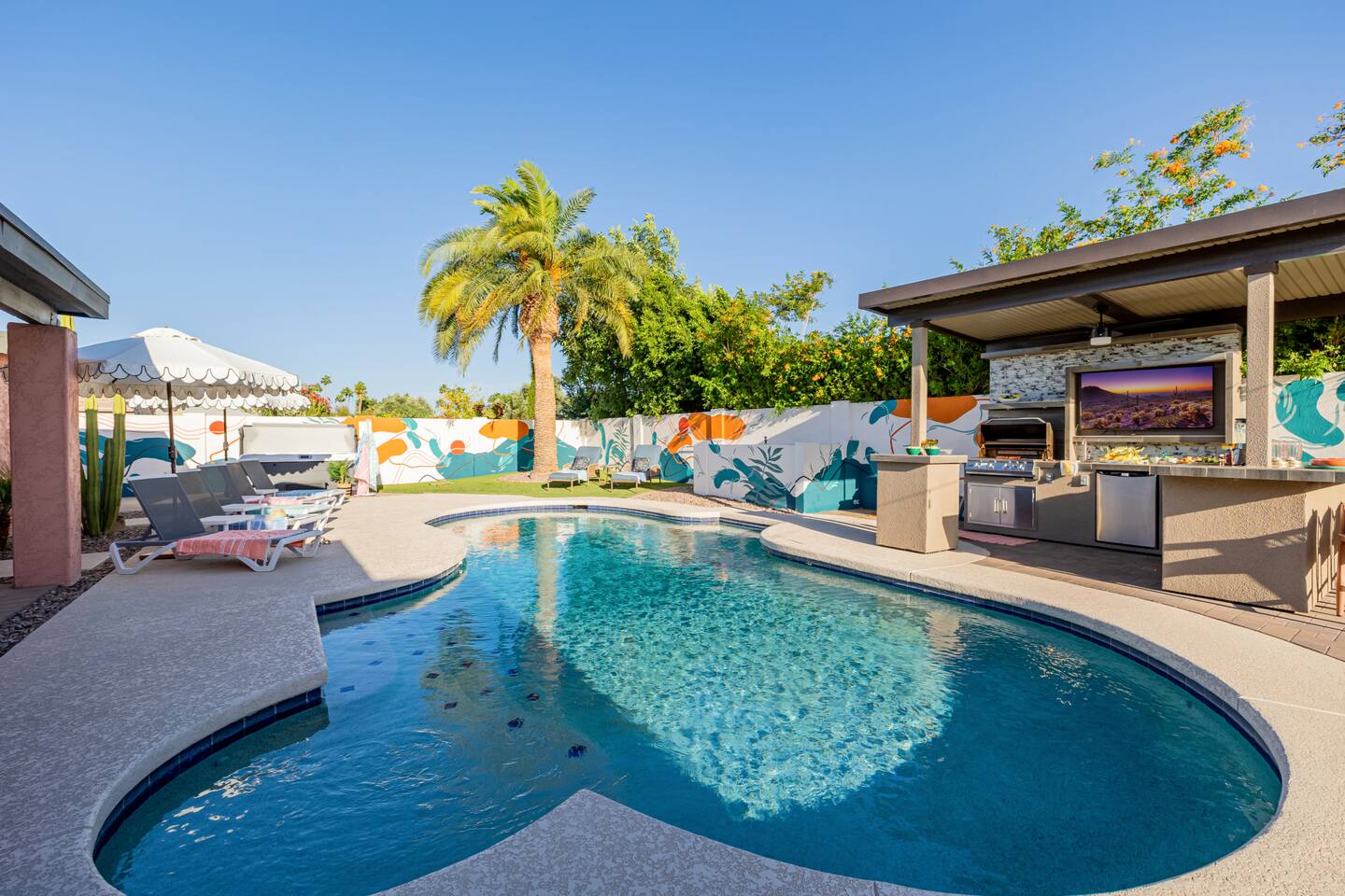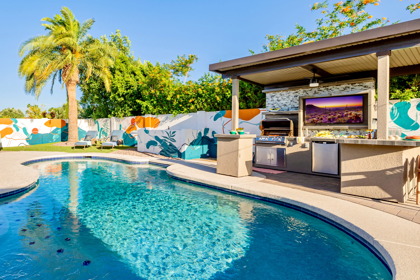 -5min to Kierland, 15min to Old Town! -NEW Outdoor kitchen, bar, TV -Hot tub, Putt Putt, Cornhole, Fire Pit -8' deep Pool, heat for add. fee* -Pop-a-shot, PacMan, Air hockey, darts -Fully stocked kitchen: InstantPot, blender -Concierge Option: Stock the fridge, decor, marg bar **Arriving early or leaving late? Ask about our half day add-on.