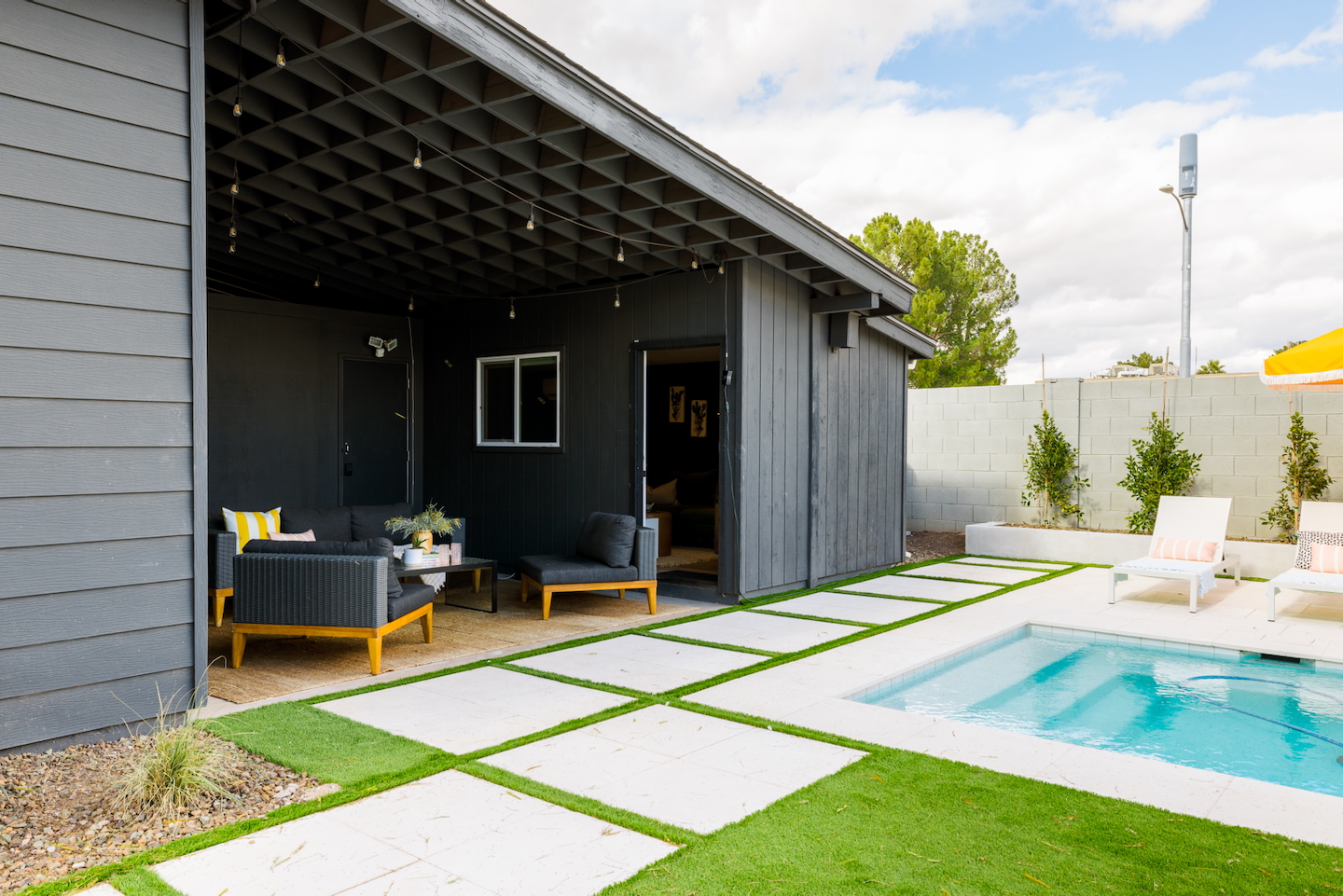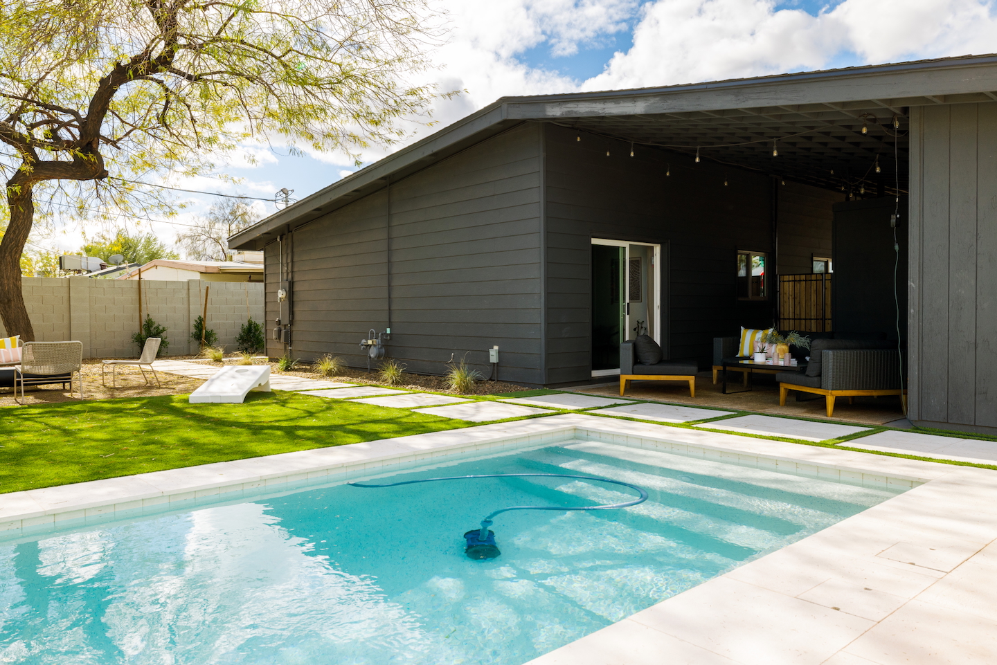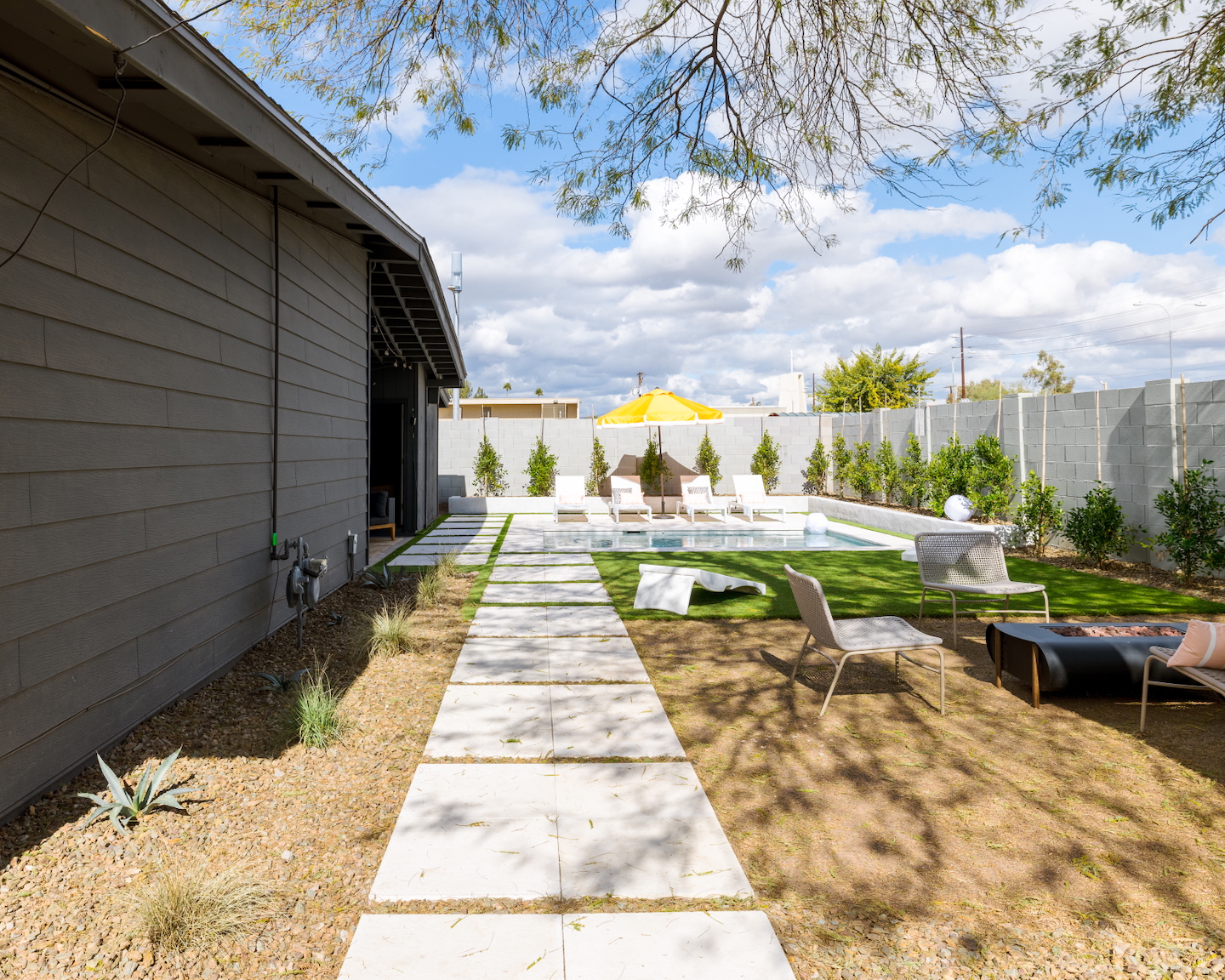 As seen on Apartment Therapy! Located in South Scottsdale between Old Town Scottsdale Entertainment District and Tempe, AZ! Just a 5 minute walk to the Scottsdale Green Belt with 11 miles of biking and walking paths. Activity friendly location including the Desert Botanical Gardens, The Phoenix Zoo, Hole in the Rock hiking, multiple golf courses, and more! BEDROOMS 1. Primary: King bed, dresser, Roku TV, Ensuite bathroom 2. Bedroom 2: Queen bed 3. Bedroom 3: Queen bed, Slider to outdoor patio seating -> All bedrooms have ceiling fans, blackout curtains, closets and a luggage rack. BATHROOMS 1. Primary Bath: walk-in shower, single vanity 2. Second Bath: tub/shower combo, single vanity -> Each bathroom comes with towels, washcloths, hand towel, hair dryer, shampoo, conditioner, body wash, hand soap, TP, toilet spray KITCHEN - Stainless steel appliances + Gas Range - Cuisinart coffee maker includes cream, sugar, tea - Locally roasted Press Coffee provided - Chemex pour-over - Teapot, blender, toaster - Pots, pans, baking dishes - Storage containers for leftovers - Mixing bowls, dish towels, sharp knives - Microwave - Filtered water + ice from the refrigerator DINING ROOM - 3 stools at the kitchen island - Outdoor dining seating for 6 DEN - in private casita - Private work space with desk - 40" Smart TV - Large white board - See covered outdoor lounge photos for location - Dedicated AC/Heat Mini split HVAC ENTERTAINMENT - 3 smart TVs: 55" in living room, 40" in den, primary bedroom - Use your login to access streaming apps - No live TV - High speed WiFi up to 500 Mbps, hardwire - Bluetooth speaker in den POOL - Private saltwater** plunge pool (4.5' at its deepest ) - Pool Heating: $65/night USD or $400/week USD, Oct–Apr - Pool Cooling: $65/night USD or $400/week USD, June-Sept - Pool towels provided - Electric air pump for your pool floats! - Poolside lounge chairs * Please note: while the property is fenced in, the pool does not have a dedicated fence **This is a saltwater pool, which means it uses a salt cell to generate its own chlorine. It’s still a chlorine pool, just with a gentler feel on skin and eyes. In hot summer months, we may need to supplement with additional chlorine to keep the water clean and balanced. BACKYARD + PRIVATE PATIOS - Covered outdoor sofa conversation set - Fire pit, propane provided - Outdoor dining table seats 6 - Weber Grill, propane provided LAUNDRY - in attached casita - Washer and dryer room - Laundry detergent, stain spray, dryer sheets - Iron, ironing board and steamer - See covered outdoor lounge photos for locations TROLLEY A free Scottsdale trolley picks up and drops off near our home! The service runs 6am to 6pm weekdays, with the exception of major holidays. Schedule and map are provided in the house.