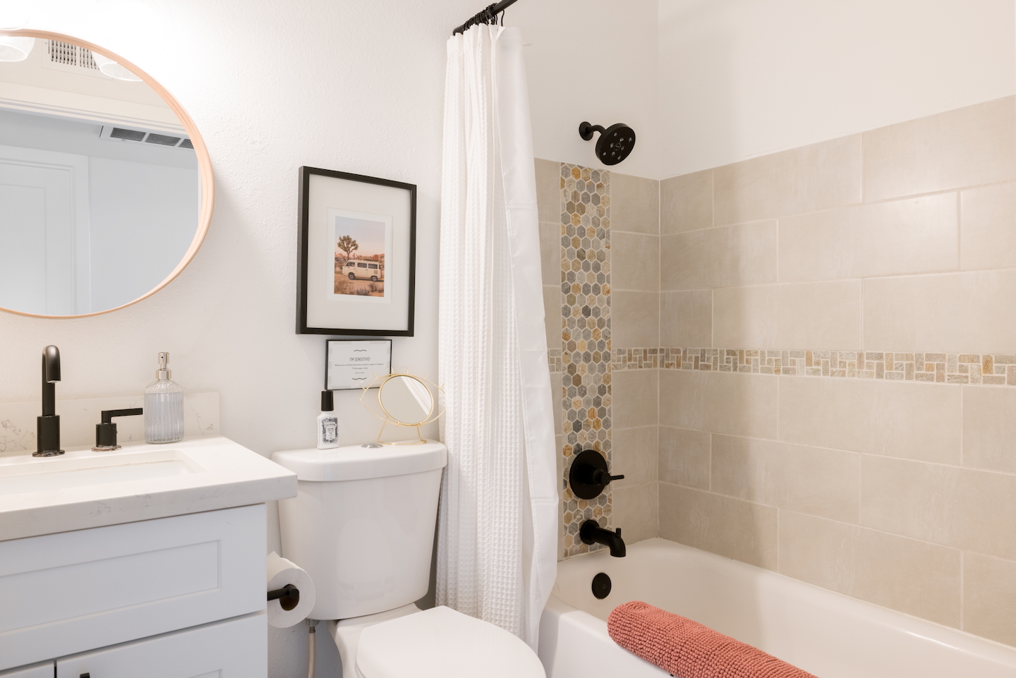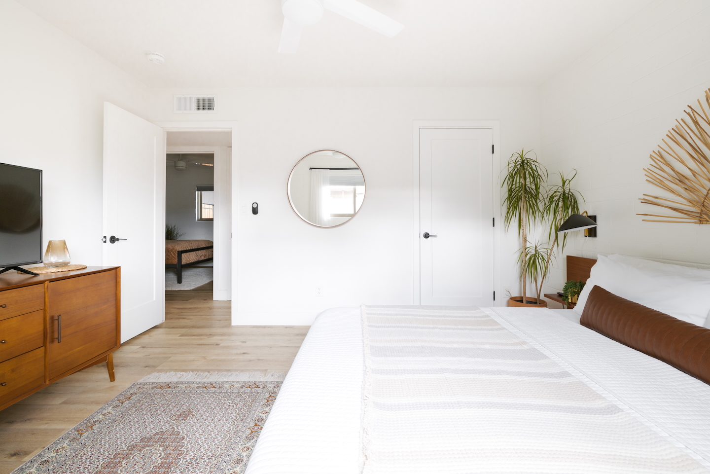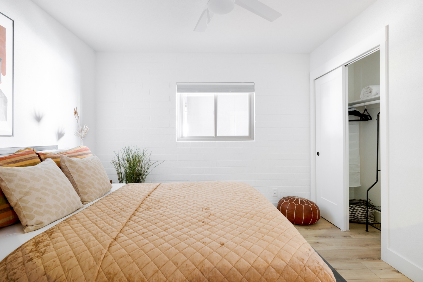 As seen on Apartment Therapy! Located in South Scottsdale between Old Town Scottsdale Entertainment District and Tempe, AZ! Just a 5 minute walk to the Scottsdale Green Belt with 11 miles of biking and walking paths. Activity friendly location including the Desert Botanical Gardens, The Phoenix Zoo, Hole in the Rock hiking, multiple golf courses, and more! BEDROOMS 1. Primary: King bed, dresser, Roku TV, Ensuite bathroom 2. Bedroom 2: Queen bed 3. Bedroom 3: Queen bed, Slider to outdoor patio seating -> All bedrooms have ceiling fans, blackout curtains, closets and a luggage rack. BATHROOMS 1. Primary Bath: walk-in shower, single vanity 2. Second Bath: tub/shower combo, single vanity -> Each bathroom comes with towels, washcloths, hand towel, hair dryer, shampoo, conditioner, body wash, hand soap, TP, toilet spray KITCHEN - Stainless steel appliances + Gas Range - Cuisinart coffee maker includes cream, sugar, tea - Locally roasted Press Coffee provided - Chemex pour-over - Teapot, blender, toaster - Pots, pans, baking dishes - Storage containers for leftovers - Mixing bowls, dish towels, sharp knives - Microwave - Filtered water + ice from the refrigerator DINING ROOM - 3 stools at the kitchen island - Outdoor dining seating for 6 DEN - in private casita - Private work space with desk - 40" Smart TV - Large white board - See covered outdoor lounge photos for location - Dedicated AC/Heat Mini split HVAC ENTERTAINMENT - 3 smart TVs: 55" in living room, 40" in den, primary bedroom - Use your login to access streaming apps - No live TV - High speed WiFi up to 500 Mbps, hardwire - Bluetooth speaker in den POOL - Private saltwater** plunge pool (4.5' at its deepest ) - Pool Heating: $65/night USD or $400/week USD, Oct–Apr - Pool Cooling: $65/night USD or $400/week USD, June-Sept - Pool towels provided - Electric air pump for your pool floats! - Poolside lounge chairs * Please note: while the property is fenced in, the pool does not have a dedicated fence **This is a saltwater pool, which means it uses a salt cell to generate its own chlorine. It’s still a chlorine pool, just with a gentler feel on skin and eyes. In hot summer months, we may need to supplement with additional chlorine to keep the water clean and balanced. BACKYARD + PRIVATE PATIOS - Covered outdoor sofa conversation set - Fire pit, propane provided - Outdoor dining table seats 6 - Weber Grill, propane provided LAUNDRY - in attached casita - Washer and dryer room - Laundry detergent, stain spray, dryer sheets - Iron, ironing board and steamer - See covered outdoor lounge photos for locations TROLLEY A free Scottsdale trolley picks up and drops off near our home! The service runs 6am to 6pm weekdays, with the exception of major holidays. Schedule and map are provided in the house.